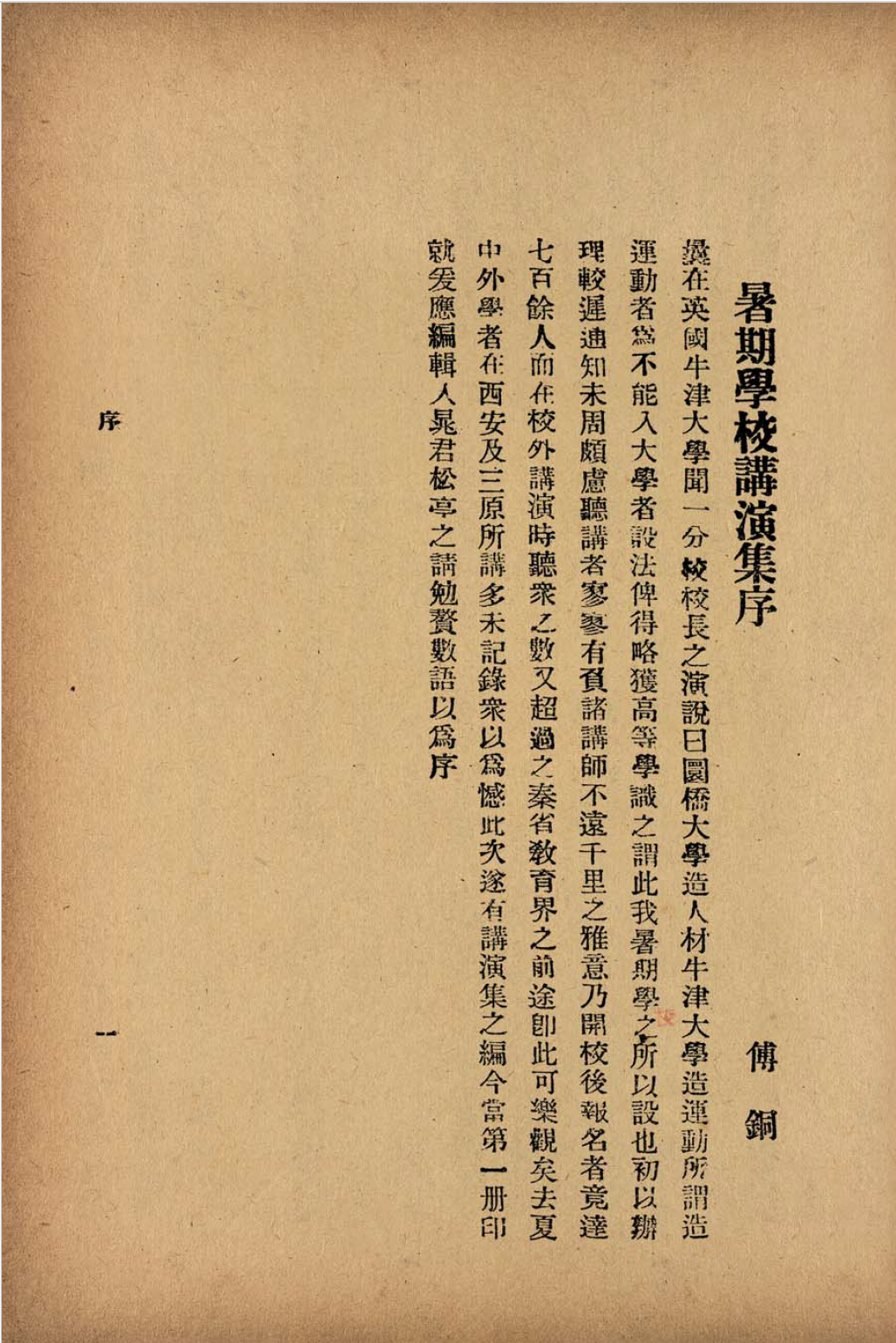 《暑期学校讲演集序》 傅铜