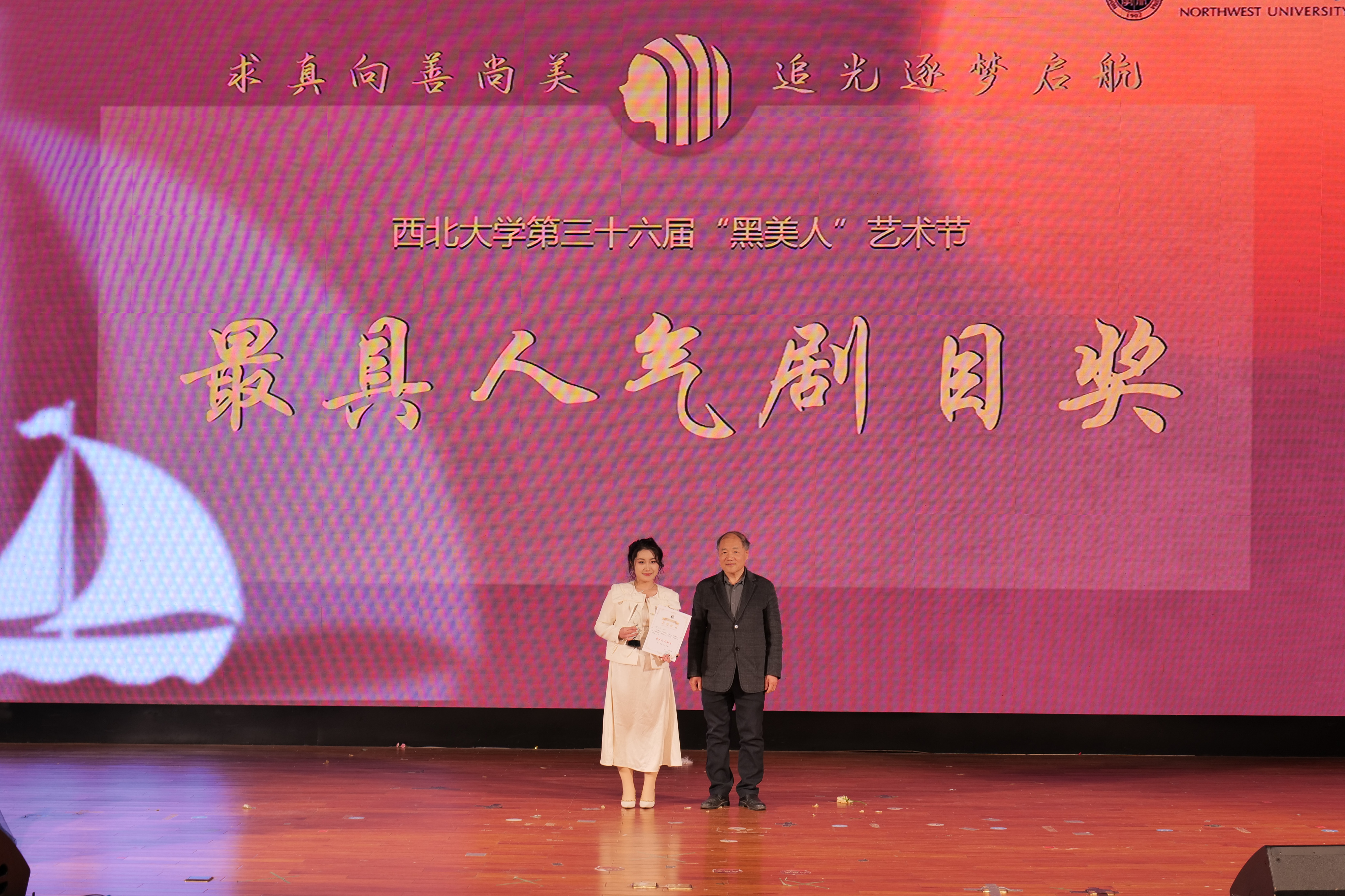 经过专家评审,王诗蓉、王宇禅获“最佳编剧奖”,张璐获“最佳导演奖”,白明才、孔令愚、王梓杰、牛帅博、马琛、刘一丹、郑舒窈、马艺伦、牛朝阳、文梦涵获“优秀演员奖”,代宇航、马凯获“最佳演员奖”,《醉与伐》获“人气剧目奖”,《穿书小镇》获“最佳剧目奖”。
